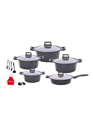 - Dessini 17-Piece Non-Stick Cookware Set Includes 1Xcasserole With Lid 20 cm, 1X 24 cm, 1X 28 cm, 1X 32 cm, 1Xshallow Casserole With Lid 28 cm, 7-Piece Cooking Tools, Black/Grey 20cm