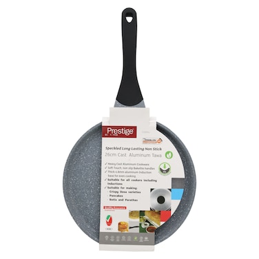 The Prestige Speckled Non-Stick Cast Aluminium Tawa PR15854 in Grey and Black is a versatile and durable cooking pan.