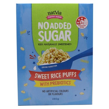 Natvia Pantry Range No Added Sugar Sweet Rice Puffs With Prebiotics 280g