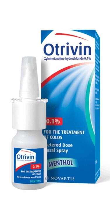 - Otrivin Menthol 0.1% is used for various types of colds. It is designed to be applied in the nostrils, where it exerts a vasoconstricting effect thereby decongesting the mucosae of the nose and the throat. Otrivin Menthol 0.1% facilitates the flow of secretions in inflammation of the sinuses. In otitis media, as an aid for decongesting the nasopharyngeal mucosa.