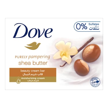 • That's why we've developed Dove Purely Pampering Shea Butter Beauty Bar, an indulgent Dove bar that brings you our mild cleansers and 1/4 moisturising cream alongside the creamy, relaxing scent of shea butter and warm vanilla