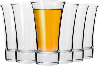 • • Attractive Shape: These shot glasses, crafted with extreme precision, feature a smooth surface and a beautiful classic look, perfect for serving vodka, liquor, or liqueur • STABILITY: The thick, sturdy base ensures the glass sits firmly in the hand, reducing the risk of alcohol spills. The slim, long cup maintains the right balance of the filled glass. • Durability: Number of pieces in set: 6. Capacity: 65ml The cups can be cleaned in the dishwasher. Made in the EU. The carefully designed shape and strong, durable glass ensure high wear resistance. • For Mother Nature: Our glasses are made of lead-free glass free of heavy metals. Therefore, they are fully recyclable. This means that by buying them, you do not pose a threat to nature.