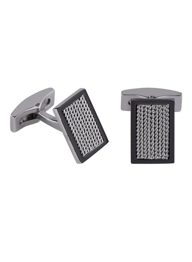 Guy Laroche Stainless Steel Cufflinks for Men, Silver and Black, 4TX403AV