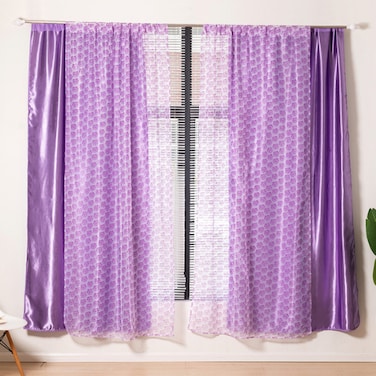 Deals For Less Luna Home, Modern Drape Tulle, Double Layer Window Curtains Set Of 2 Pieces, Purple Color