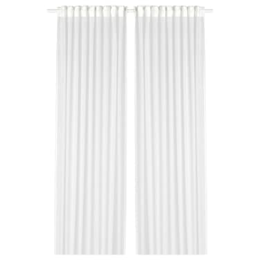 The curtains are made from 41 recycled 0.5l PET bottles. Using waste as a resource brings us one step closer to a more sustainable future. The sheer curtains let the daylight through but provide privacy so they are perfect to use in a layered window solution. The heading tape makes it easy for you to create pleats using RIKTIG curtain hooks.