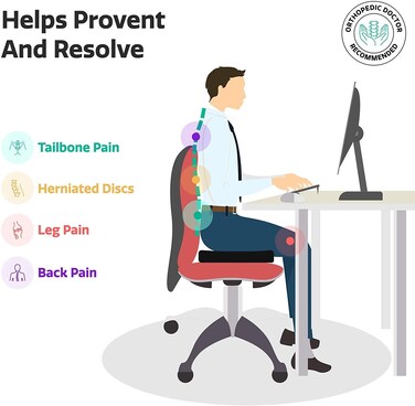 Jj-Boutique Large Orthopedic Seat Cushion, Gel And Memory Foam Seat Pillow To Relieve Back, Sciatica And Coccyx/Tailbone, Great As Office Chair Cushion, Car Seat Cushion Or For Wheelchair, Black