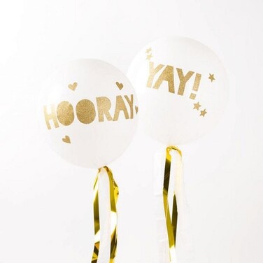 The kit also includes gold striped twine.Kit contains 8 balloons, 2 x crepe paper streamers, 2 x gold mylar streamers, 8 lengths of twine.Pack size: 2 x 5 x 5 inches.