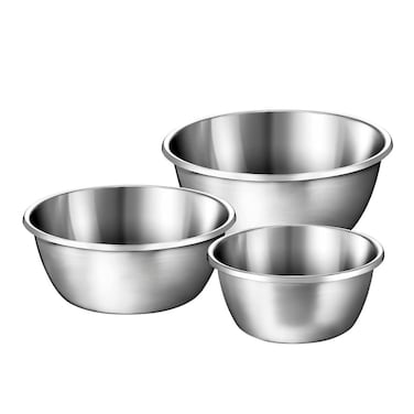 The 3 Piece Satin Finish Stainless Steel Mixing Bowl Set is an essential collection of mixing bowls for any kitchen. Made of durable stainless steel, the mixing bowls come in three different sizes for all your cooking and baking needs.