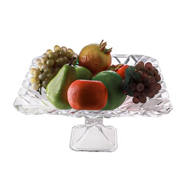 AlHoora 30x30xH15cm Crystal Clear Fruit & Serving Bowl Stand with Geometric Design
