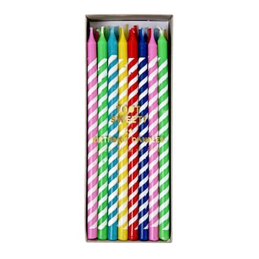 - These stripey party candles will add the finishing touches to your celebration cake.