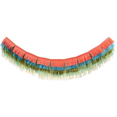 - Add a touch of bright colour to your party with this gorgeous five-layer Colourful Fringe large garland.