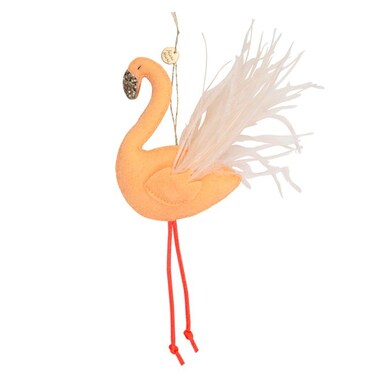 Felt with polyester filling.Feathers with coral cord legs.Gold thread detail.Product dimensions: 3.5 x 6.25 x 0.5 inches.
