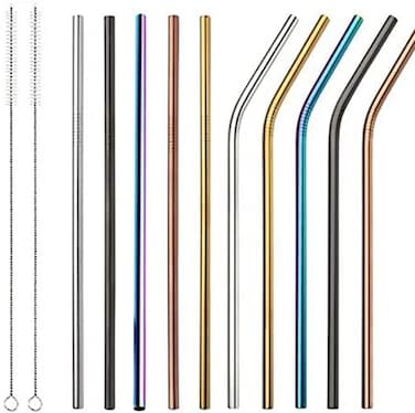 Generic 11Pcs Stainless Steel Straw Reusable Metal Drinking Straw With Cleaner Brush For Home Party Barware Bar Accessories