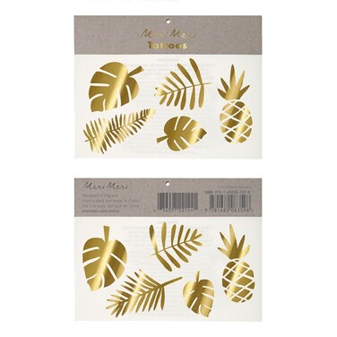 - These cool tattoos come in tropical leaf and fruit designs embellished with shiny gold foil.
