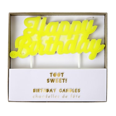 - Create a special surprise with this Happy Birthday party candle in neon yellow.