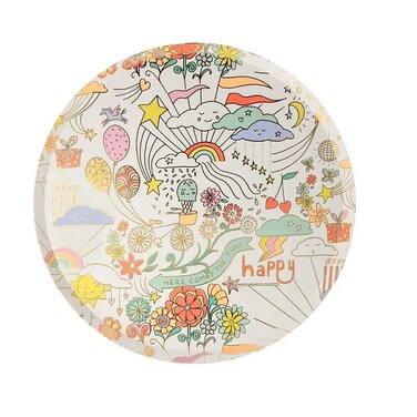 Featuring colourful clouds, suns, balloons and the words "Happy" and 'Here comes the fun". Printed both sidesNeon print & gold foil detailPack of 8Product dimensions: 260 x 260mm