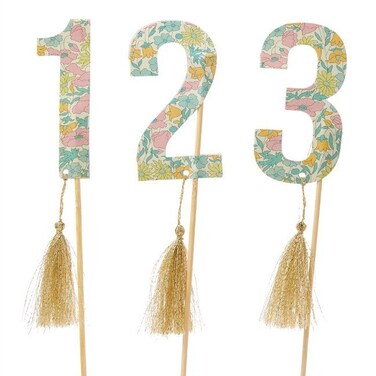 Each flag is embellished with a luxury gold tassel.Pack contains 9 numbered and 4 patterned table flags.