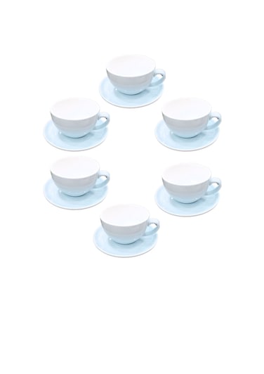 Liying 12Pcs Porcelain Cups And Saucers Set - Sky Blue Colour Tea Set - 200Ml Cup 6Pcs And Saucer 6Pcs Set For Idle Tea, Turkish Coffee, Espresso And Cappuccino