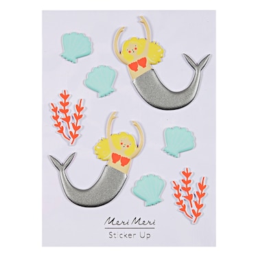 The mermaids are embellished with shiny silver tails.Pack contains 8 stickers.