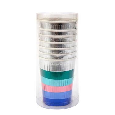 Perfect for celebrations and parties. Suitable for hot & cold drinks.Metallic mylar fringed sleeve.Pack of 8.Product dimensions: 79mm x 89mm x 79mm