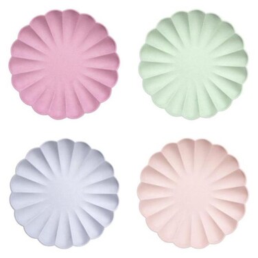 - A multicolour selection of our wonderful eco party plates, a range of moulded scallop shaped plates for a stylish celebration.