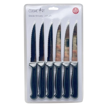 Upgrade your dining experience with the CuisineArt Orson Steak Knives Black 6 PCS set. These knives are not only practical, but they also add a touch of elegance to your table setting. Whether you're a steak enthusiast or just looking for a reliable set of knives for your kitchen, these steak knives are sure to impress.