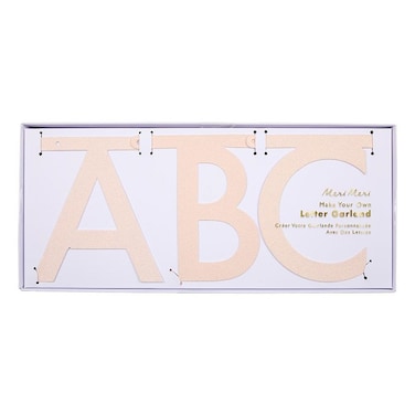 This one comes with plenty of letters, so you can spell out whatever you want to say in an elegant font, covered in beautiful pink iridescent glitter! Contains 134 letter pennants 50 gold tone joining pins & neon cord. Letter height: 105mm Pack size: 270mm x 120mm x 40mm