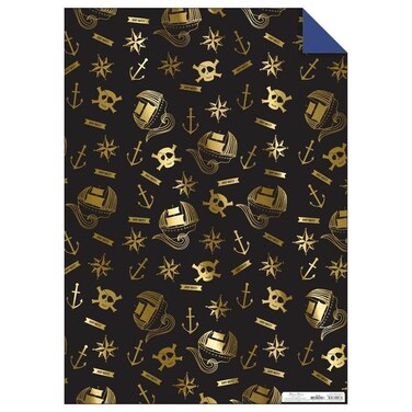 Featuring beautifully illustrated ships, skull and crossbones, compasses, and anchors in a striking black and gold.110 gsm. Solid colour reverseGold foil detail. Pack of 3.Product dimensions: 19.625 x 27.5 inches.