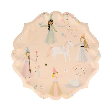 - Little princesses and princes will delight at eating from these beautifully illustrated plates. They feature pretty princesses, a unicorn, swan and castle, and have a delightful curved border.