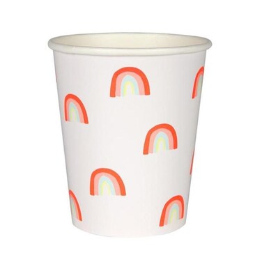 These simple party cups feature a pattern of lots of mini rainbows, in striking neon colours.Pack of 12. Suitable for hot & cold drinks. Neon print detail. Size: 260ml capacity.