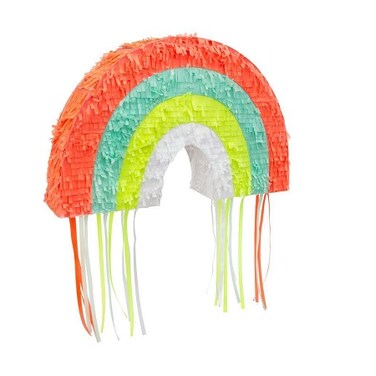 - Brighten up any party with this rainbow pinata. Beautifully decorated in colourful stripes with hanging ribbons.