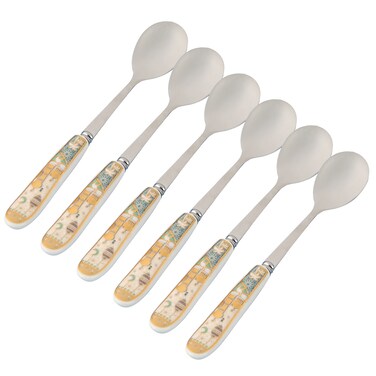 Ramadan Design 6 Pack Stainless Steel Coffee Spoon Ceramic Handle Teaspoon Sugar Spoon Ice Cream Desert Spoon Stirring Soup tableware-Green and White Color