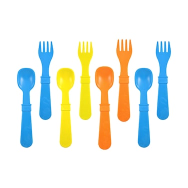 Made from recycled milk jugs! These colorful forks and spoons are perfect for little ones learning to feed themselves. Spoons with a deep scoop and forks with durable, rounded tips are just some of the features that will benefit your hungry toddler. Not only are they better for your child, they are better for your environment.