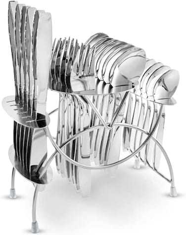 - Royalford Stainless Steel Cutlery Set RF10790 Cutlery Set With Stand 25-Piece Set 100% Food-Grade Suitable For Dining Table, Home And Restaurant Kitchen Accessories - Silver