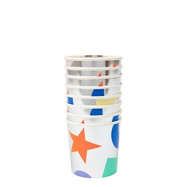 - The bright, colourful design on these silver geometric highball cups will be sure to delight your guests.