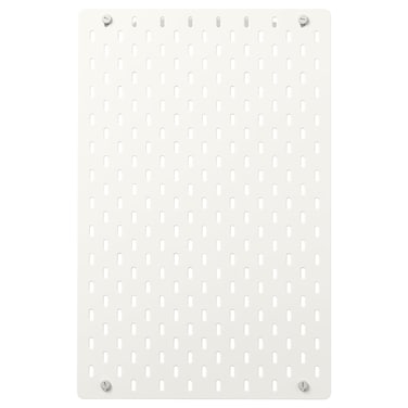 Perfect for your home office, but goes just as well in a bathroom, hallway or kitchen to have small items close at hand. Complete with SKADIS accessories to create the best storage for your needs. Choose the accessories in the SKÅDIS series which suit your needs and create a personal storage combination. You can place the pegboard on a wall – or fix it to your desk or side of a wardrobe by completing with connectors that are sold separately. The pegboard comes in 3 sizes. Choose the one that best suits your space or put several together to create a larger solution. Use one or several pegboards together, to gather and organize all your small gadgets. With SKÅDIS pegboard and accessories it's easy to organize and quickly find what you need. Perfect for all the rooms in the home. You can store things on both sides of the pegboard if you use it as a divider on a desk. Rail for wall mounting included. Different wall materials require different types of fixing devices. Use fixing devices suitable for the walls in your home, sold separately. Base material: Fiberboard, Acrylic paint. Metal parts: Steel, Powder coating. Wipe clean with a damp cloth. Wipe dry with a clean cloth. Tested and approved for bathroom use. We want to have a positive impact on the planet. That is why by 2030, we want all materials in our products to be recycled or renewable, and sourced in responsible ways.