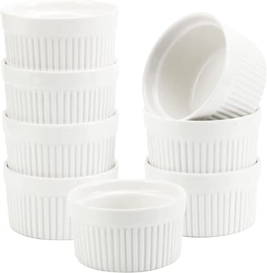 Star Cook 6 Oz Ramekin Bowls,8 PCS Set for Baking and Cooking, Oven Safe Sleek Porcelain White Ramikins for Pudding, Creme Brulee, Custard Cups and Souffle Small instant table tray