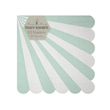 - A stylish party napkin with an aqua and white stripe, finished with a scollop edge.