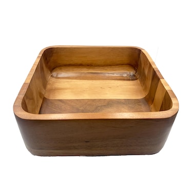 Wooden bowls suitable for serving salads and fruits This beautiful Acacia wooden bowl is ideal for serving nuts and appetizers. It has a clean finish with thick edges for more durability. It makes a great addition to your kitchen collection. Adds a touch of elegancy and style. Product Details Material Acacia Wood Dimensions 25 x 15 x 25cm Color Brown Shape Square Origin Thailand Dishwasher Safe No