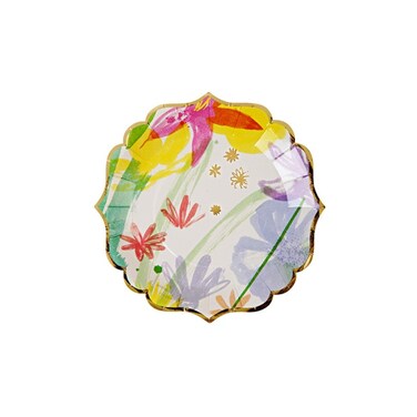 - A beautifully styled paper canape party plate with a richly coloured, hand-drawn pattern, finished with a shiny gold foil edge.