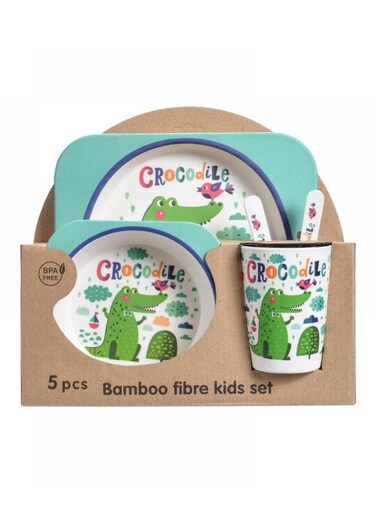 5PCS Unbreakable Kids Plate and Bowl Set for Healthy Mealtime, Bamboo Children Dishware Set with Plate, Bowl, Cup, Fork and Spoon, BPA Free Dishwasher Safe, Crocodile