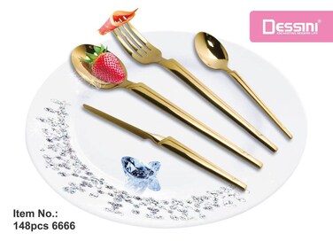 - <p><li>Country of Origin: China<p><li>Colour: gold<p><li>Material: Stainless Steel<p><li>Number of Pieces: 148<p><li>Product Length: 33cm<p><li>Product Height: 17cm<p><li>Product Width Depth: 11cm<p><li>Product Weight: 8.5kg<p><li>What's In The Box: What S In The Box: 30 X Dinner Spoon, 30 X Dinner Fork, 12 X Tea Spoon, 12 X Cake Fork, 12 X Fruit Knife, 12 X Coffee Spoon, 12 X Ice Spoon, 12 X Ice Cream Spoon, 2 X Honney Spoon, 2 X Butter Knife, 1 X Vegetable Spoon, 1 X Sugar Tong, 1 X Soup Spoon, 2 X Soup Ladle , 1 X G