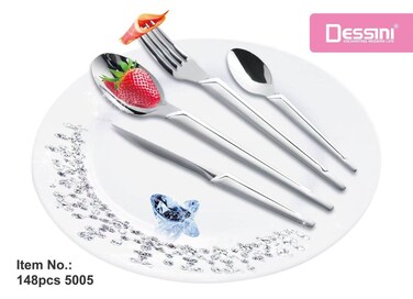 - <p><li>Country of Origin: China<p><li>Colour: silver/gold<p><li>Material: Stainless Steel<p><li>Number of Pieces: 148<p><li>Product Length: 33cm<p><li>Product Height: 17cm<p><li>Product Width Depth: 11cm<p><li>Product Weight: 8.5kg<p><li>What's In The Box: What S In The Box: 30 X Dinner Spoon, 30 X Dinner Fork, 12 X Tea Spoon, 12 X Cake Fork, 12 X Fruit Knife, 12 X Coffee Spoon, 12 X Ice Spoon, 12 X Ice Cream Spoon, 2 X Honney Spoon, 2 X Butter Knife, 1 X Vegetable Spoon, 1 X Sugar Tong, 1 X Soup Spoon, 2 X Soup Ladle , 1 X G<p><li>Dishwasher SafeRust Proof<p><li>Scratch Resistant<p><li>Shatterproof<p><li>high quality polish<p><li>fashine the design<p><li>dish washing safe<p><li>18/10 stainless steel cutlery