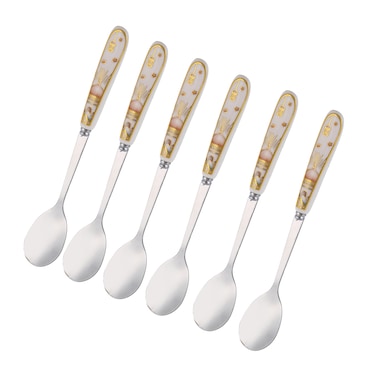 Lihan 6Pcs Ramadan Designed Dessert Spoons (S), Gold Plasted Design Plating Stainless Steel 15X2X15Cm Spoons For Cake Spoon, Dessert Spoons, Easy To Clean, Dishwasher Safe
