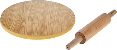 Made from Natural Wood (Pine, Ash, Beech, or Oak), Our chapati or bread maker chakla from wood with a rolling pin 11". The Product Comes in Random Assorted natural wood colors and brands (Woodco or Sokax).