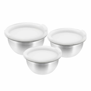 The Raj Mixing Bowl Set With Plastic Lid is a versatile and practical addition to any kitchen.