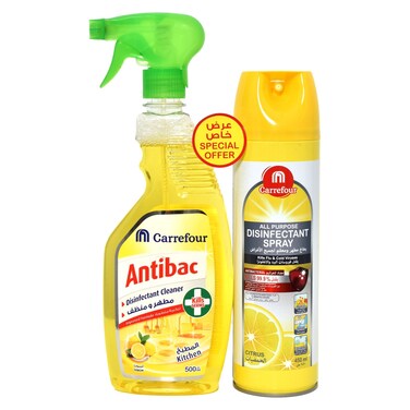 Carrefour Antibac Disinfectant Cleaner Kitchen Lemon 500ml With All Purpose Disinfectant Spray Citrus Clear 450ml