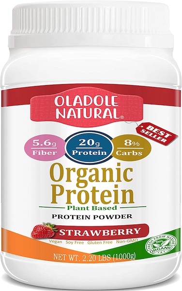 - Oladole Natural Plant Based Organic Protein Powder, Strawberry - Vegan, Low Net Carbs, Non Dairy, Gluten Free, Lactose Free, No Sugar Added, Soy Free, Non-Gmo, 2.20 Pound 1kg Halal
