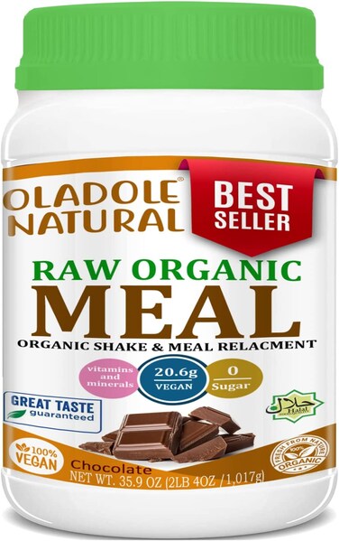 Oladole Natural Raw Organic Meal Replacement Shakes Chocolate Plant Based Vegan Protein Powder, Pea Protein, Sprouts, Greens, Probiotics, Dairy Free