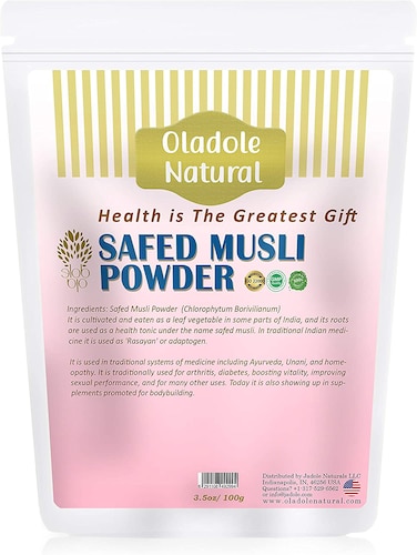 - Oladole Natural Safed Musli Powder Promotes Strength, Stamina And Muscle Gain -100g